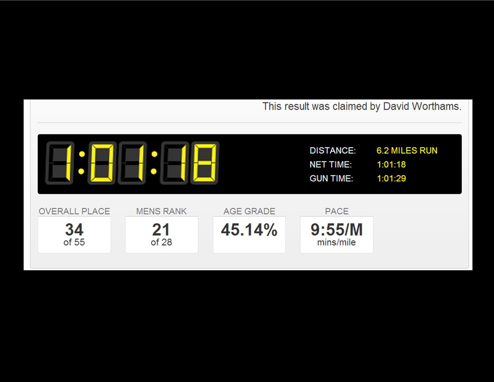 Another thought hit me, as I reached the trailhead and started my run back towards home. A year ago, this same person who was running in DC talked me into running along with her for our first 5k. I’ve previously posted about my first Kalamazoo Klassic, in which I ran my 5k in 35:01. In the time since we started running, I’m down 25 pounds, I have suits and pants that I can wear again because I’m becoming slimmer. And in just under a year since we started, I ran my first timed 10k (I still won’t call it my first “official” 10k because I’m saving that for the Bayshore Marathon 10k later in May). I just wanted to run it in less than 65 minutes. It appears that I did because according to the Consumers Sunburst 2013 clock, my time was: