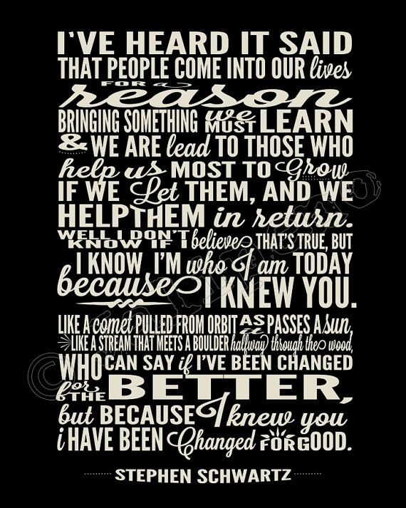 So please let the words of “For Good” do it for me. You have come into my life for a reason. You have helped me grow. You have helped me bounce back.